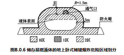 B.0.3 储存易燃液体的地上固定顶储罐爆炸危险区域划分(图B.0.3),应符合下列规定: