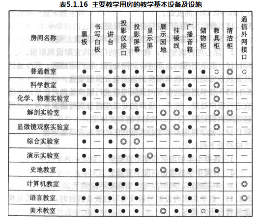 5.1.16 主要教学用房应配置的教学基本设备及设施应符合表5.1.16的规定。