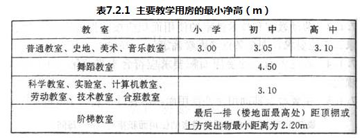 7.2.1 中小学校主要教学用房的最小净高应符合表7.2.1的规定。