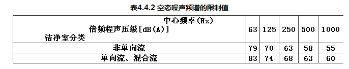 4.4.1 洁净室内的空态噪声级,非单向流洁净室不应大于60dB(A),单向流、混合流洁净室不应大于65dB(A)。