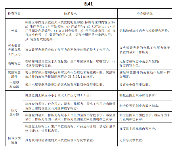 检查项目、技术要求和不合格情况见表41。
