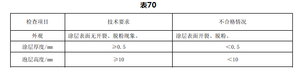 检查项目、技术要求和不合格情况见表77。 6.14.8.2 检查方法