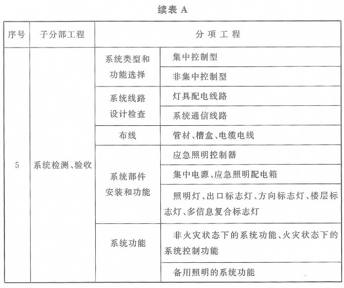 附录A 消防应急照明和疏散指示系统子分部、分项工程划分