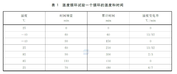放入温度箱中,温度箱温度按照表1和图1进行调节,循环次数5次。