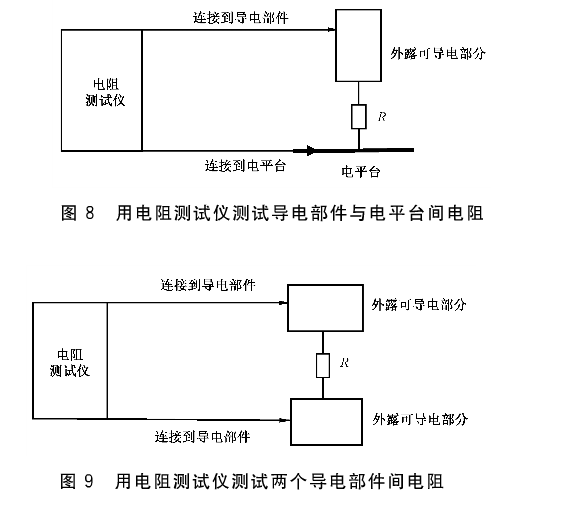 电位均衡可用电阻测试仪直接测量,也可以采用独立直流电源配合电流和电压检测设备进行测量。其中电阻测试仪的测量电流可调,电阻测试分辨率高于0.01Ω。独立直流电源电压也可调节。两个外露的可导电外壳或遮栏之间的电阻,也可以通过外露的可导电外壳或遮栏与电平台之间的连接电阻值计算得出。
