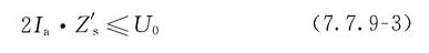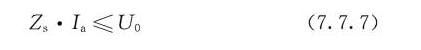 式中:Zs——故障回路的阻抗(包括电源、电源至故障点的相导体和故障点至电源之间的保护接地导体在内的阻抗)(Ω);