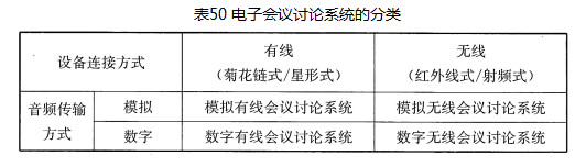 有固定座席的会议场所,宜采用有线会议讨论系统;座席布局不固定的临时会场或对安装布线有限制的会场,宜采用无线会议讨论系统;也可采用有线/无线混合系统;