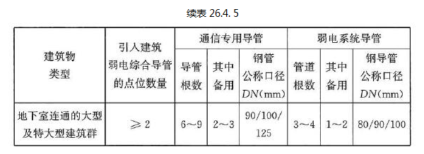 26.4.8 直接引入建筑物地下室的弱电终端设备用户管宜采用多根公称口径为25mm~ 50mm