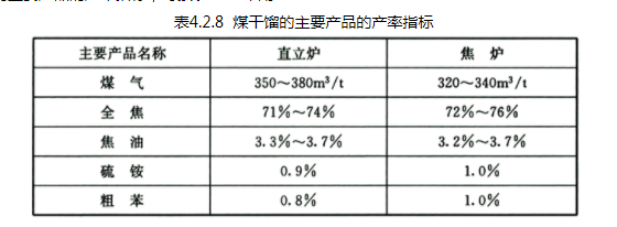 4.2.8 煤干馏的主要产品的产率指标,可按表4.2.8采用: