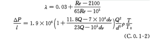 注:除附录C所列公式外,其他计算燃气管道摩擦阻力系数(λ)的公式,当其计算结果接近本规范式(6.2.6-2)时,也可采用。