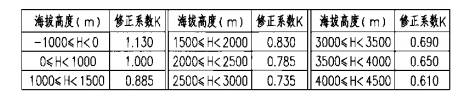 七氟丙烷、IG-541、三氟甲烷、IG-100灭火设计用量或惰化设计用量计算公式中的海拔高度修正系数(K)可按下表数值采用: