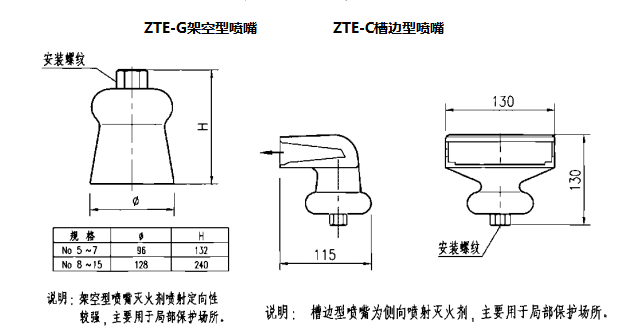 说明:高压、低压二氧化碳灭火系统专用喷嘴依据南京消防器材股份有限公司提供的技术资料绘制。