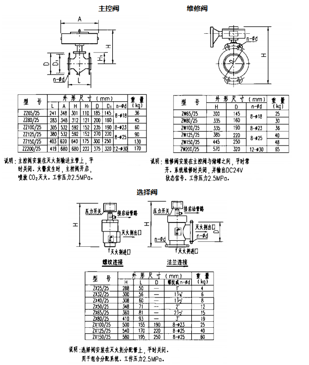 2.储罐灭火剂喷放口直径DN是为满足60s内排空储罐而确定的,也可根据用户需要按最大防护区选择阀规格调整灭火剂喷放口径。