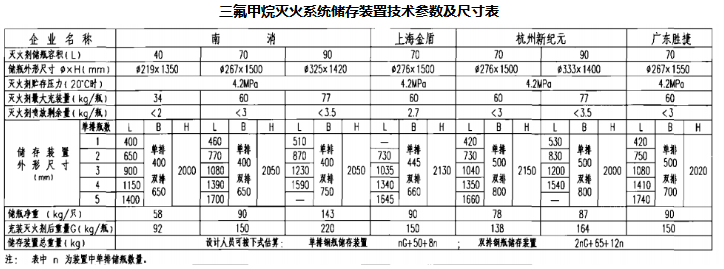 说明:三氟甲烷灭火系统储存装置外形图依据南京消防器材股份有限公司提供的技术资料绘制。其他企业装置外形可能略有区别,但其基本功能是一致的。