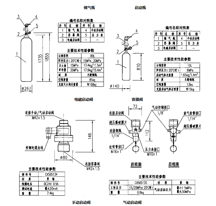 (储气瓶、启动瓶、容器阀、电磁启动阀、气动启动阀、手动启动阀)