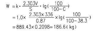 按设计用量的2%估算喷放剩余量,则系统灭火剂储存量为:186.6×1.02=190.33(kg)