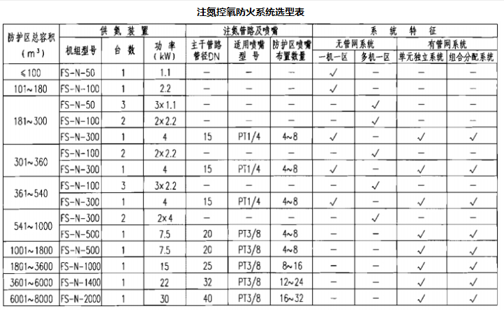 注氮控氧防火系统选型表