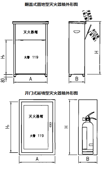 灭火器箱外形图、安装图