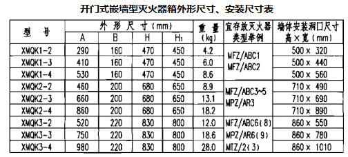 说明:1.嵌墙型灭火器箱A≥660mm时宜加工成双开门形式。