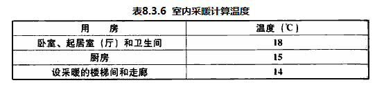 8.3.6 设置采暖系统的普通住宅的室内采暖计算温度,不应低于表8.3.6的规定。