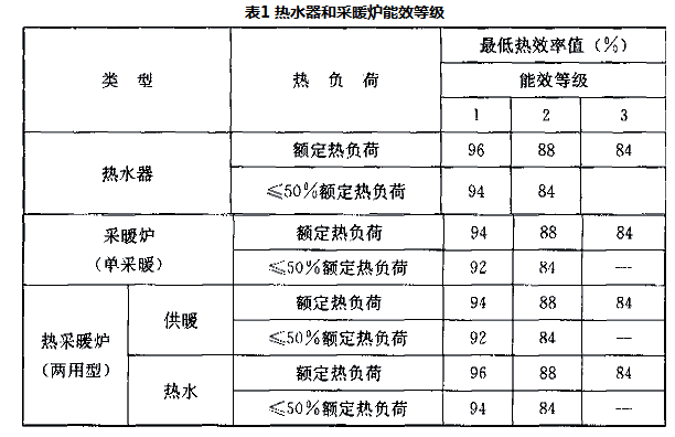 8.3.12 本规范提出了户式燃气采暖热水炉设计选用时对热效率的要求,表1引自《家用燃气快速热水器和燃气采暖热水炉能效限定值及能效等级》GB 20665,该标准第4.2条规定了热水器和采暖炉能效限定值为表1中能效等级的3级。