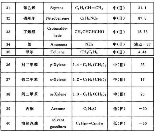 注:序号1~34摘目现行行业标准《压力容器中化学介质毒性危害和爆炸危险程度分类》HG 20660-2000,序号35~40摘自现行行业标准《石油化工有毒、可燃介质钢制管道工程施工及验收规范》SH 3501-2011。