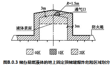 B.0.3 储存易燃液体的地上固定顶储罐爆炸危险区域划分(图B.0.3),应符合下列规定:
