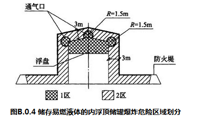 B.0.4 储存易燃液体的内浮顶储罐爆炸危险区域划分(图B.0.4),应符合下列规定: