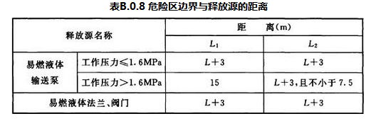 3 危险区边界与释放源的距离应符合表B.0.8的规定。