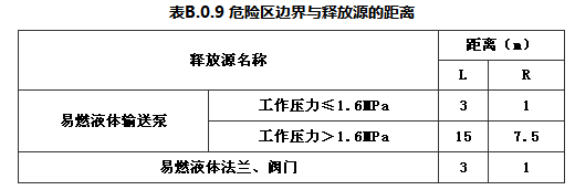 2 危险区边界与释放源的距离应符合表B.0.9的规定。