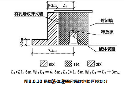 B.0.10 易燃液体灌桶间爆炸危险区域划分(图B.0.10),应符合下列规定: