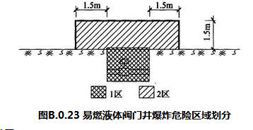B.0.23 易燃液体阀门井的爆炸危险区域划分(图B.0.23),应符合下列规定:
