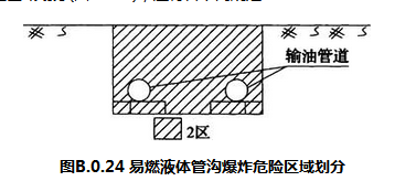 B.0.24 易燃液体管沟爆炸危险区域划分(图B.0.24),应符合下列规定:
