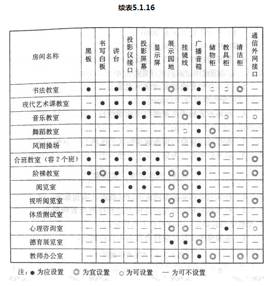 5.1.16 主要教学用房应配置的教学基本设备及设施应符合表5.1.16的规定。
