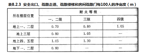 8.2 疏散通行宽度