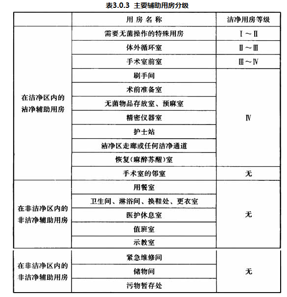 3.0.4 需要建洁净手术室的医院,应根据能够开展的手术类别选建不同等级的洁净手术室,合理配置辅助用房。