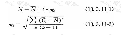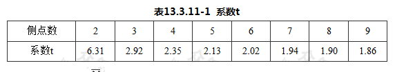 式中: t——单侧分布系数,置信度上限达95%时,应按表13.3.11-1取值。