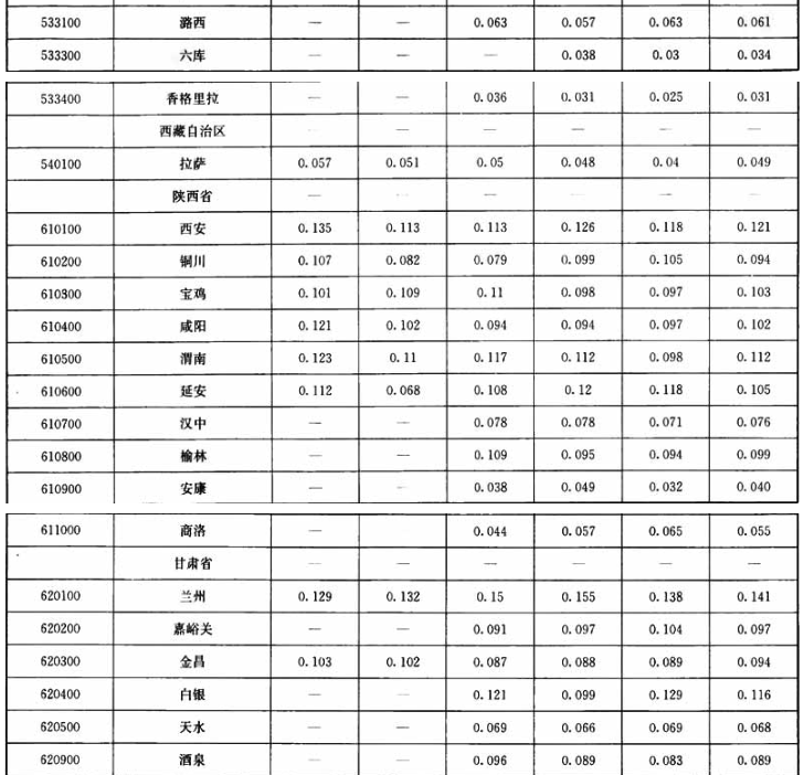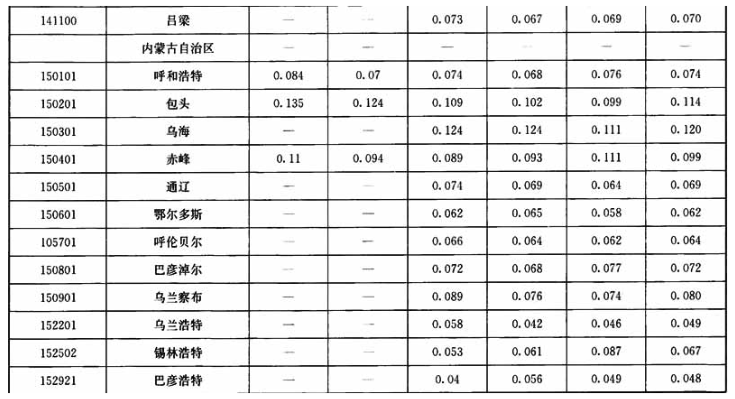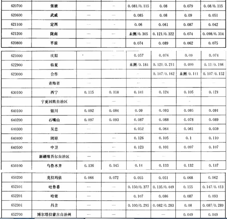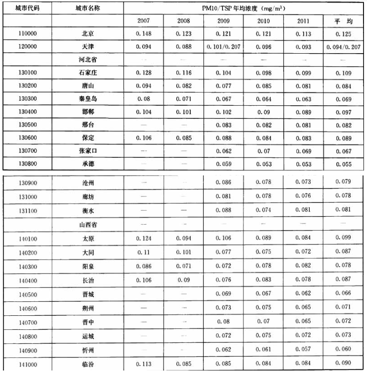 附录A 地级市以上城市可吸入颗粒物/总悬浮颗粒物年平均浓度