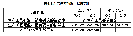 6.1.4 洁净室的温、湿度范围应符合表6.1.4的规定。