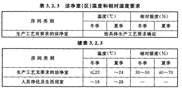 3.2.3 洁净室(区)的温度和相对湿度应按表3.2 3确定。