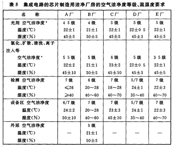 注 表中*为芯片生产设备配带微环境装置,装置内空气洁净度等级为1~2级