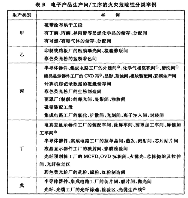 附录B 电子产品生产间/工序的火灾危险性分类举例