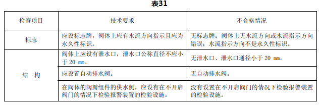 检查有无标志牌,阀体上是否有水流方向指示,指示方向是否错误,是否为永久性标识等。