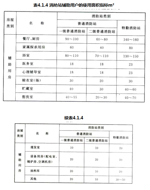4.1.4 本条参照《城市消防站建设标准》建标152—2011,规定了消防站各种辅助用房的使用面积指标。
