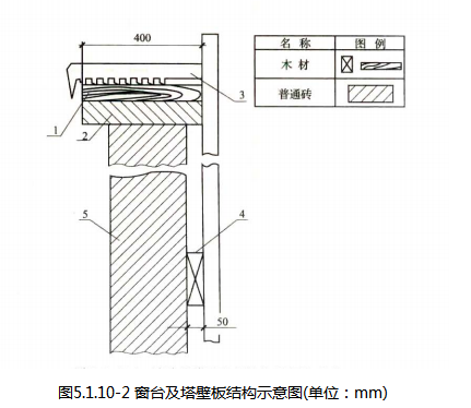 7 训练塔的窗台上应设有可更换的木质窗台板,窗台板宽度应为0.4m,窗台板应突出前塔壁0.05m。训练塔塔壁上应设置木质垫板(图5.1.10-2)。