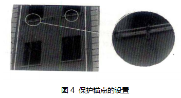 在训练塔上进行绳索训练,要求有必要的绳索固定点即锚点。为了保证安全,通常在固定绳索时,每条主绳要有两个以上的锚点,即使一个锚点破损,也不会造成坠落危险。保护锚点一般用于吊升、下降保护(如图4),此类锚点强度不能进行度过训练。因此,在进行建筑的面板、栏杆、檩条、预制粱的设计时,应充分考虑其作为锚点的功能,其集中荷载应在最不利位置处进行重点验算,应满足承受消防员和工具重量的强度要求。
