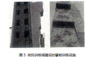5.1.12 考虑到依托训练塔在消防站建设攀岩训练设施,占地面积较小,可以节约土地,因此本规范提出训练场地需设置攀岩训练设施的,可依托训练塔或建筑外墙等建设,使消防站中能够开展攀岩基本训练,如图5。