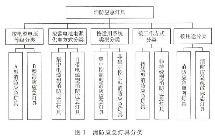 2.0.2~2.0.5 消防应急灯具是为人员疏散、消防作业提供照明和指示信息的各类灯具,包括消防应急照明灯具和消防应急标志灯具,其分类见图1。