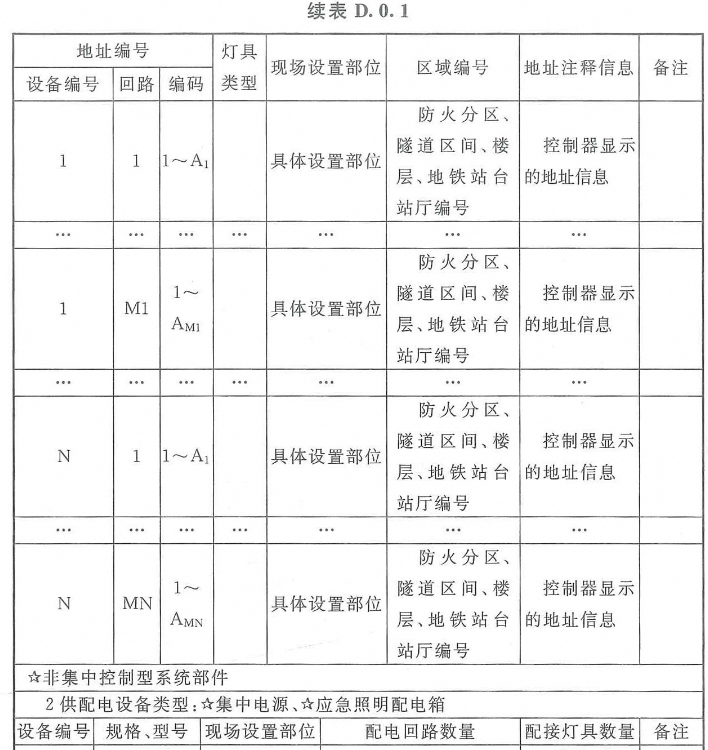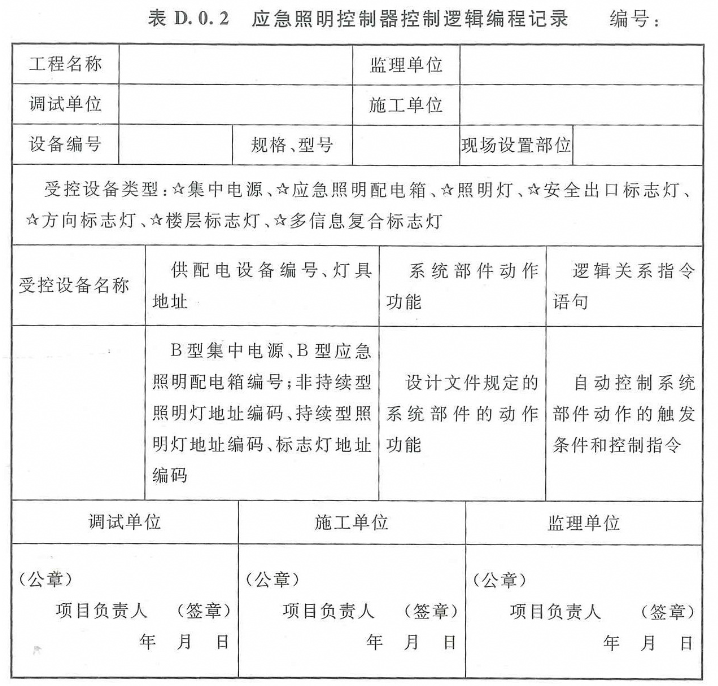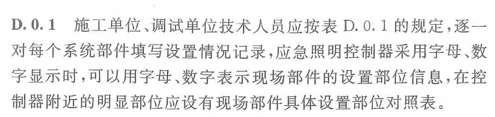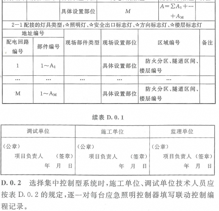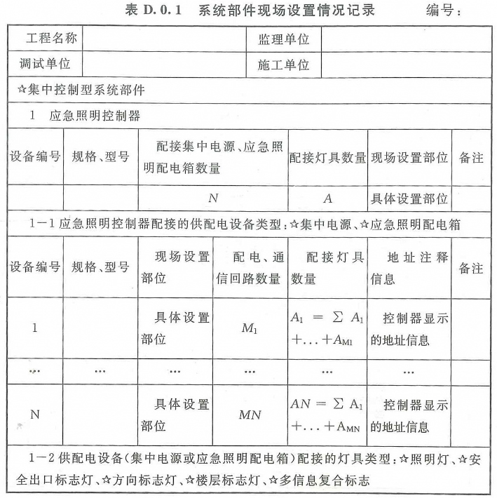 附录D 系统部件现场设置情况、应急照明控制器联动控制编程记录