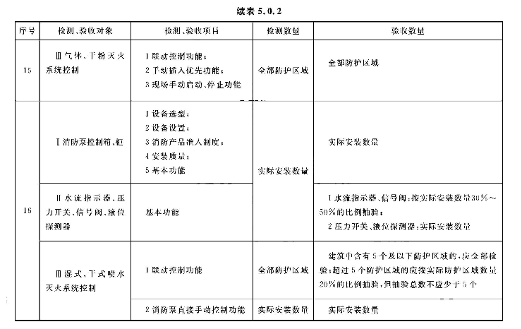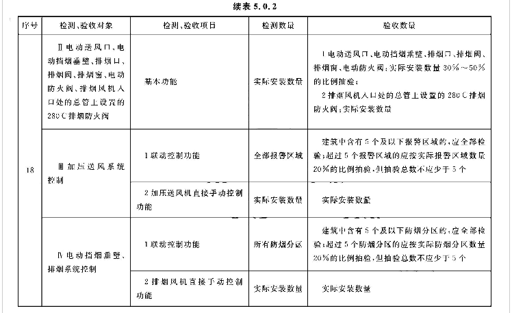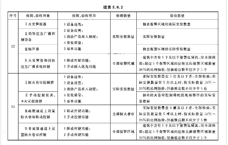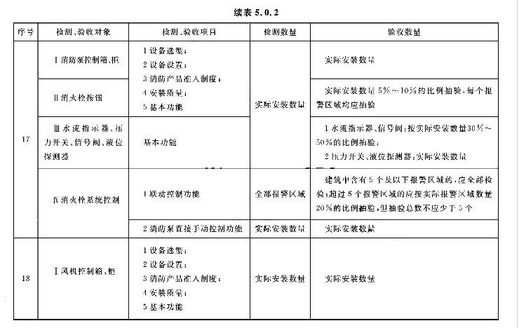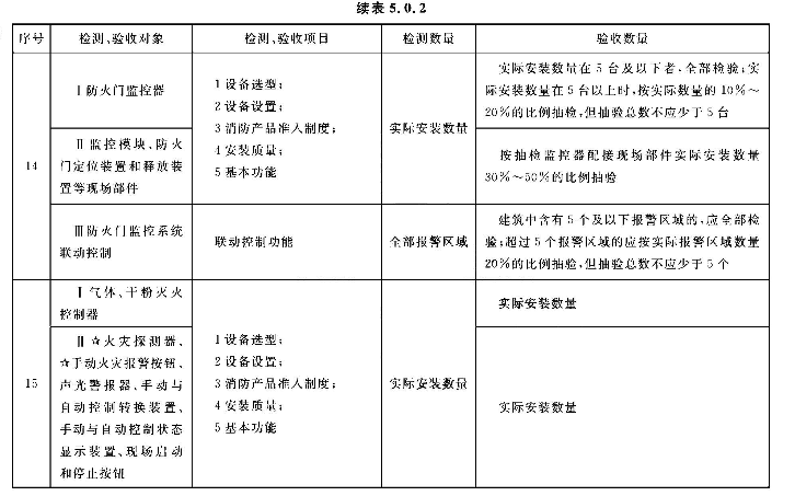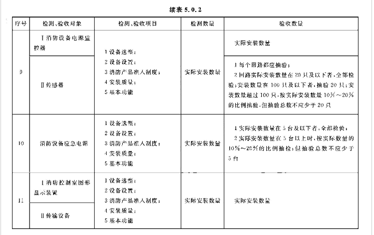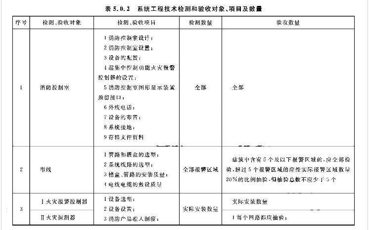 5.0.2 系统的检测、验收应按表5.0.2所列的检测和验收对象、项目及数量,按本标准第3章、第4章的规定和附录E中规定的检查内容和方法进行,按本标准附录E的规定填写记录。